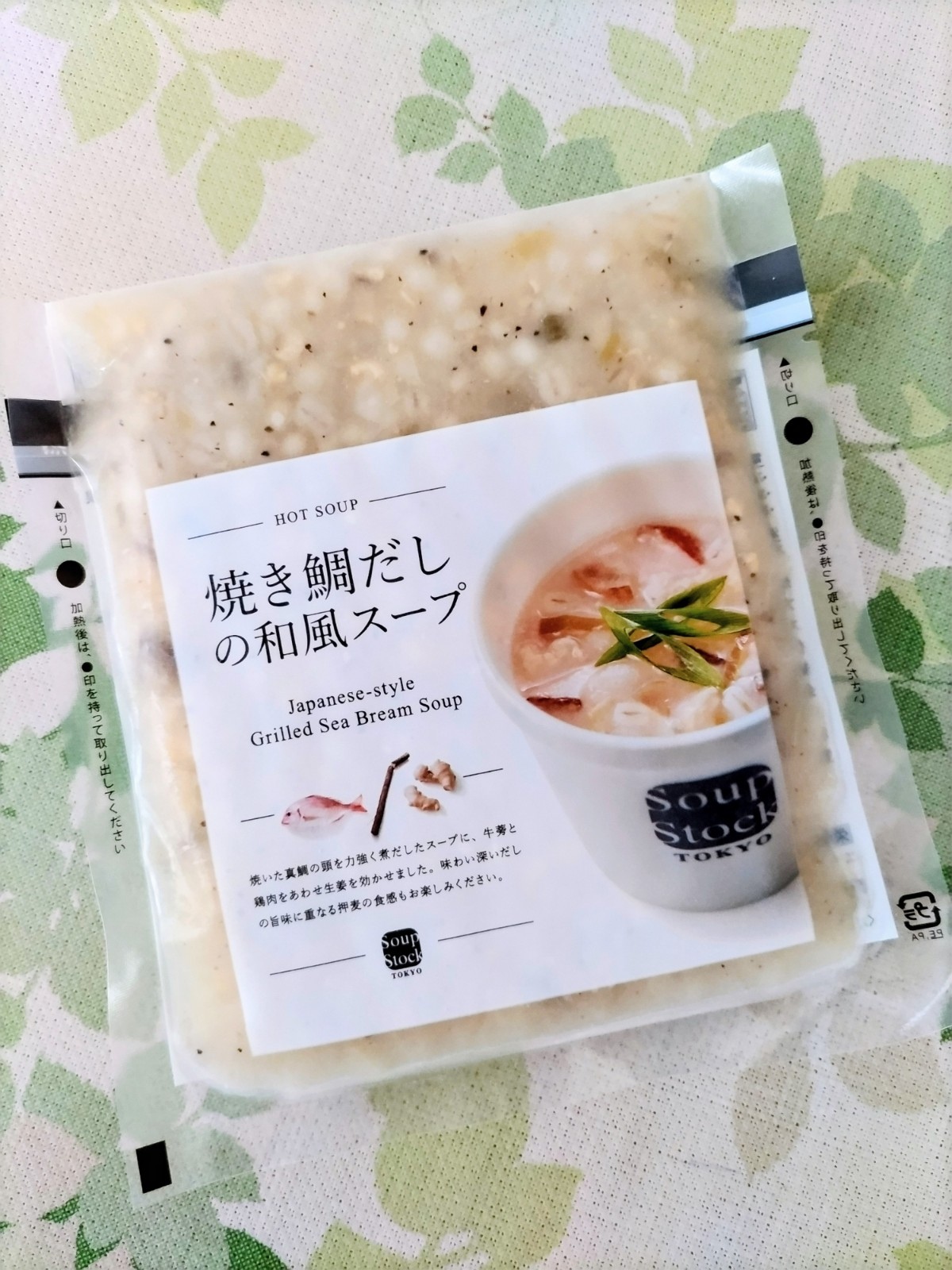 焼き鯛だしの和風スープ 今日の朝ごはんは頂き物のSoup Stock Tokyoの冷凍スープ「焼き鯛だしの和風スープ」でした😊大根、ごぼう、しいたけ、押し麦の食感がよく、しっかり噛んで食べるスープという感じで、鯛と鶏の優しい出汁が効いた朝ごはんにぴったりのスープでおいしかったです✨
