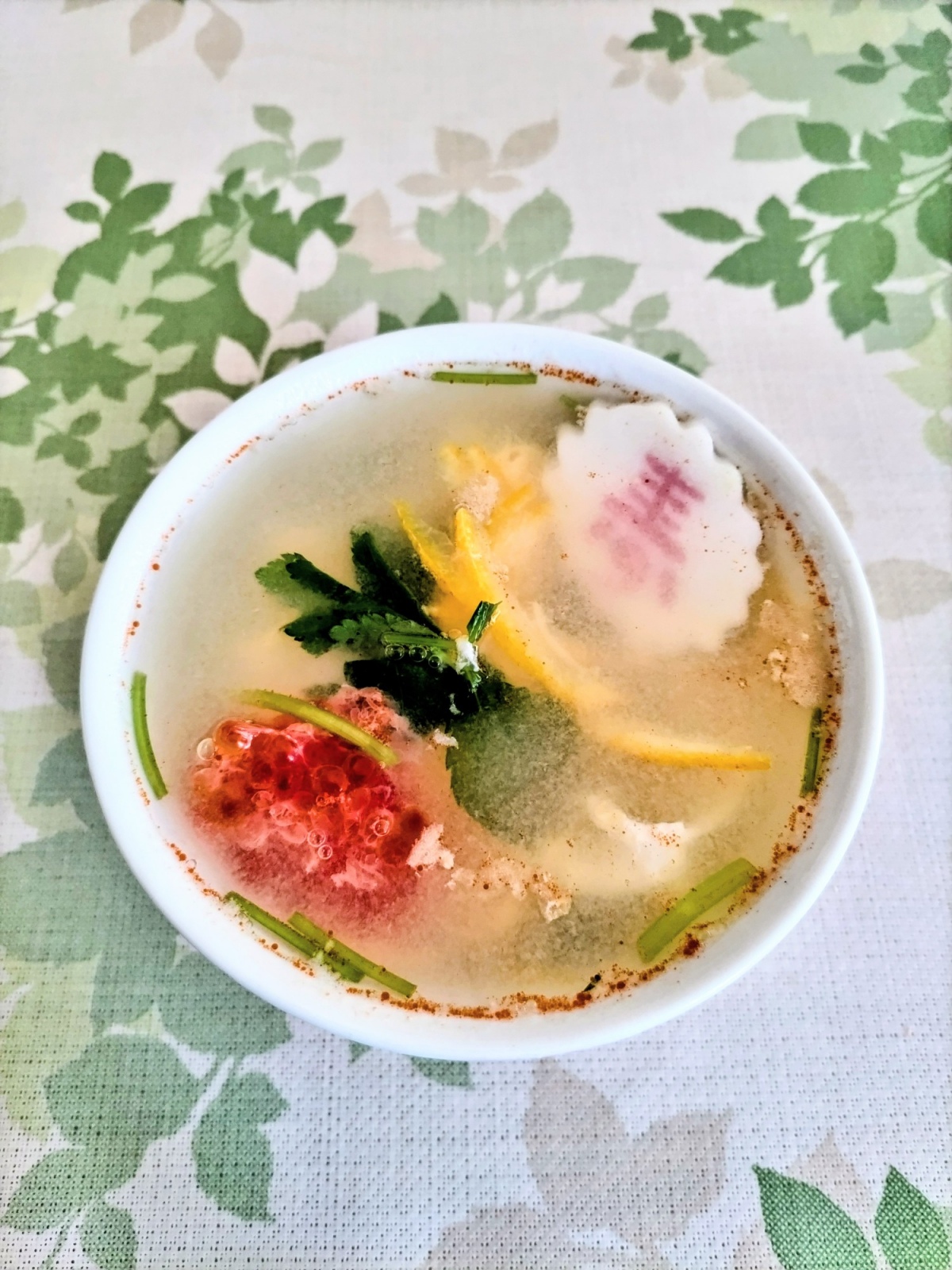 我が家のお雑煮は父の実家の味で、塩味のかき玉汁に三つ葉、刻み柚子、塩すじこです。