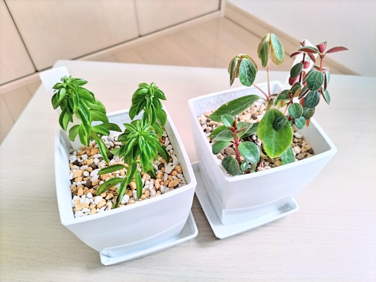 2種類のペペロミアの近況 11月上旬に植え替えたペペロミア・ニパドラ(写真左)と、12月中旬に植え替えたペペロミア・ルベラ(写真右)の今日の様子です🪴ルベラの方は草丈も伸び、葉数も増えて順調です😊ニパドラの方は、購入時と比べると最近は明らかに不調の兆しが😥葉の開き方も悪いし、葉自体も薄っぺらく、ツヤやぷりぷり感が失われている感じです。一応まだ葉が落ちたり、茎や株元が黒ずんだりするような危機的な症状は出ていないので様子見をしてますが、心配です💦