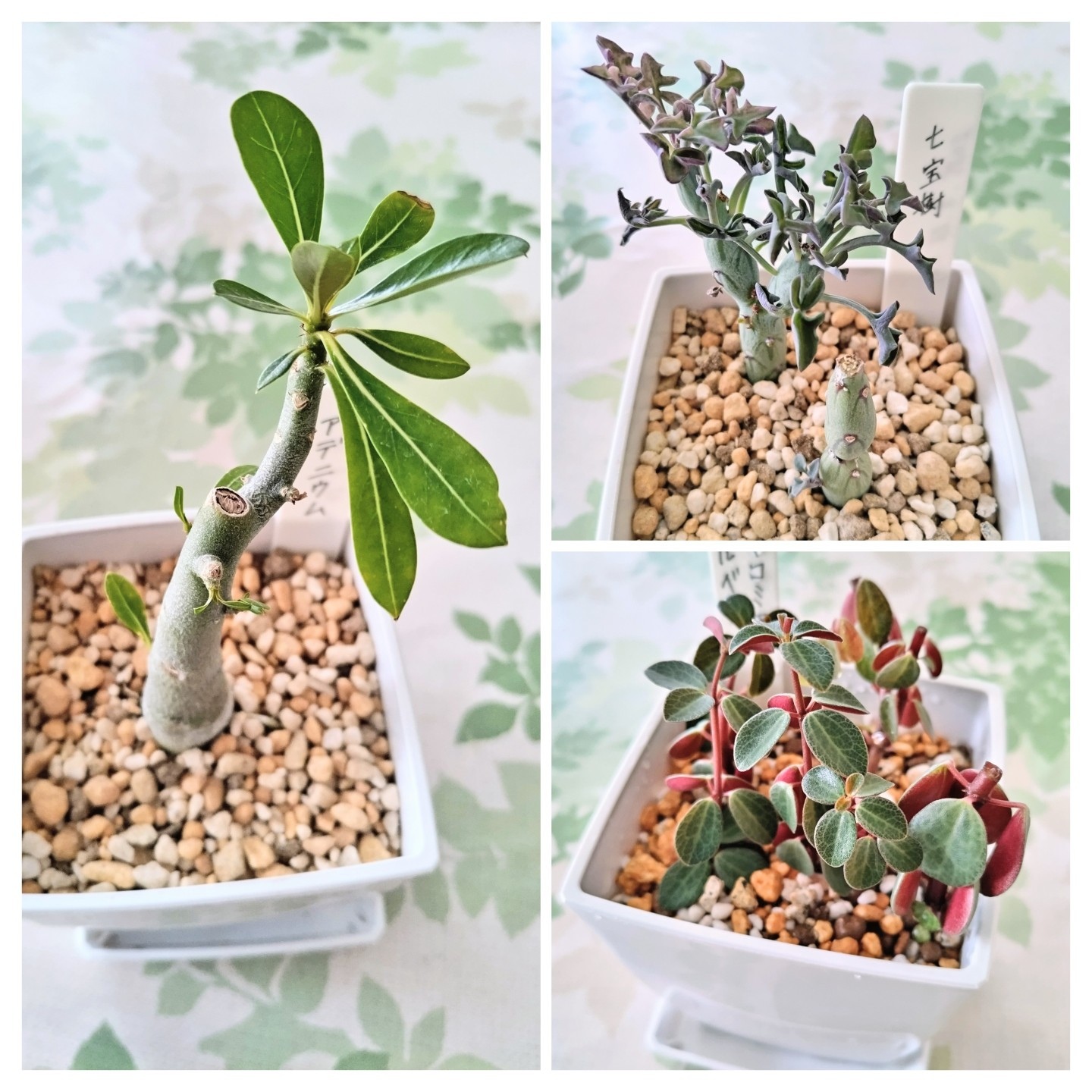先日注文していた土が届いたので、早速アデニウムと七宝樹の植え替えと、ついでにペペロミア・ルベラの摘心と挿し芽作業をしました✂️